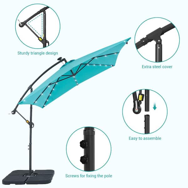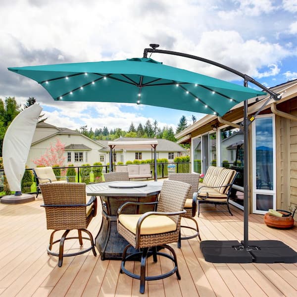 8.2 ft. x 8.2 ft. Lake Blue Solar LED Lighted Square Patio Cantilever Umbrella With a Base
