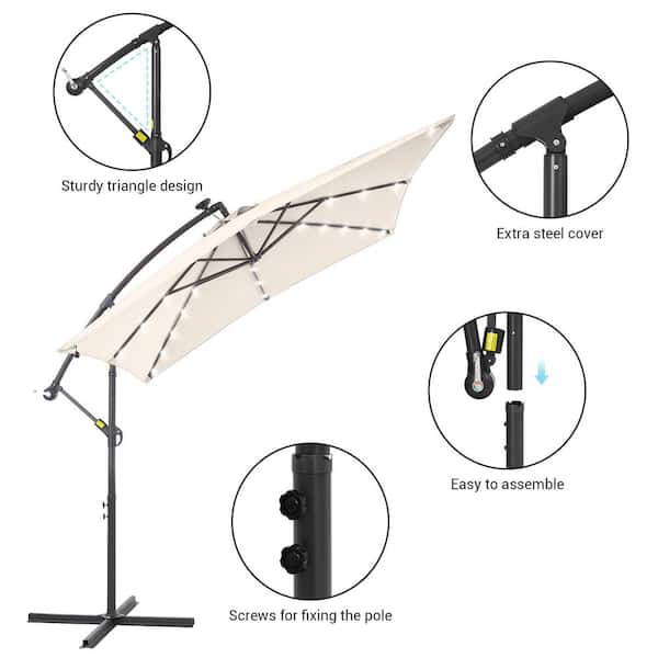 8.2 ft. x 8.2 ft. Patio Offset Cantilever Umbrella With LED Lights, Rectangular Canopy, Steel Pole and Ribs in Beige