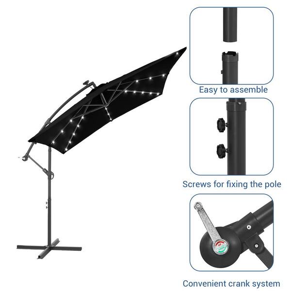 8.2 ft. x 8.2 ft. Solar LED Square Cantilever Patio Umbrella for Villa Gardens, Lawns and Yard in Black