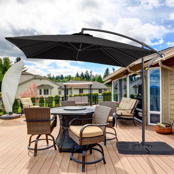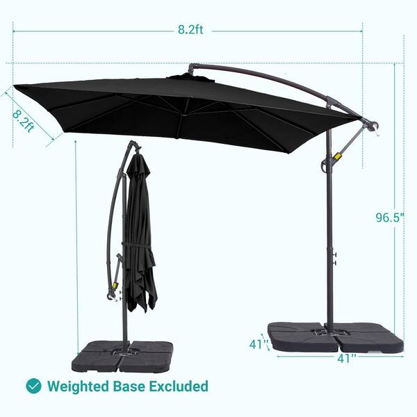 8.2 ft. x 8.2 ft. Square Offset Cantilever Patio Umbrella with a Base in Black
