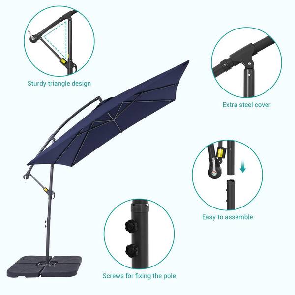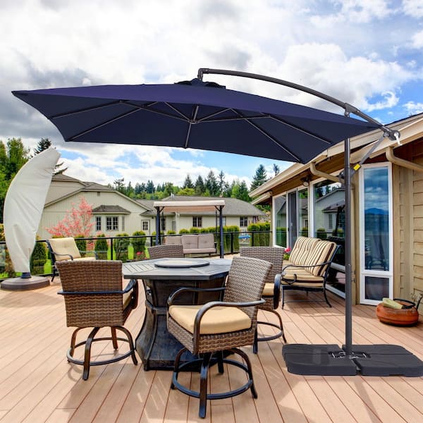 8.2 ft. x 8.2 ft. Square Offset Cantilever Patio Umbrella with a Base in Navy Blue