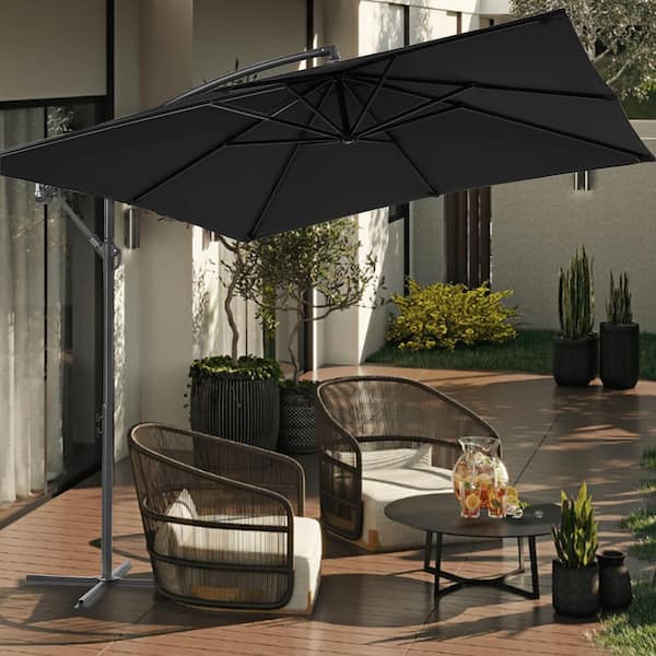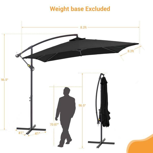 8.2 ft. x 8.2 ft. Square Outdoor Offset Cantilever Patio Umbrella for Villa Gardens, Lawns and Yard in Black