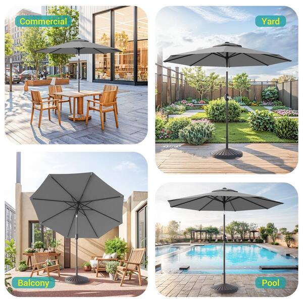 9 ft. Market Solar Lighted LED and Tilt Button Outdoor Table Patio Umbrella, UV-Resistant Canopy in Grey
