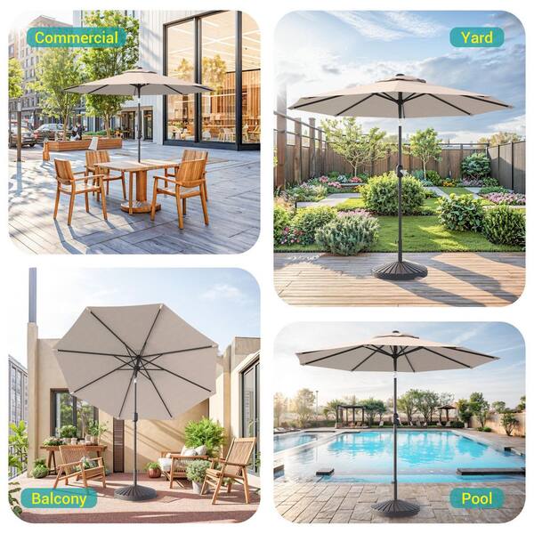 9 ft. Patio Market Crank and Tilt Umbrellas, Table Umbrellas,UV-Resistant Canopy in Beige