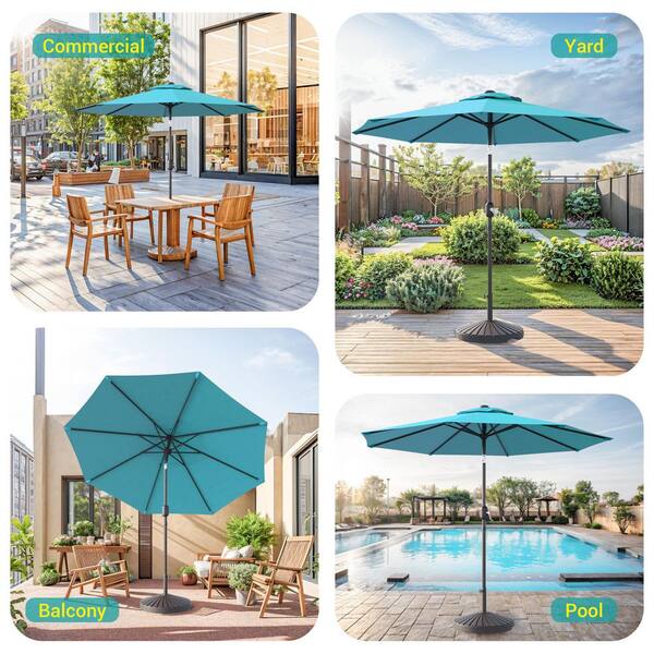9 ft. Solar Lighted LED Outdoor Patio Market Table Umbrella in Lake Blue, UV-Resistant Canopy and Tilt Button