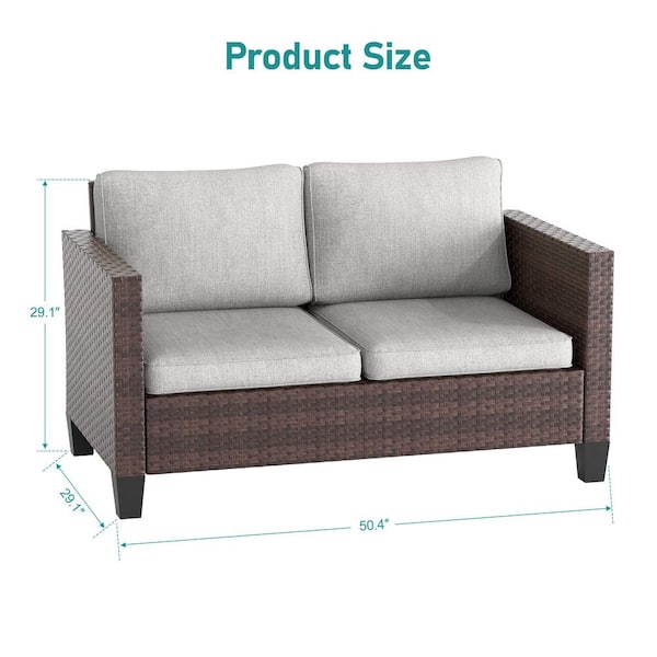 All-Weather Metal Frame Brown Wicker Outdoor Loveseat Patio Chaise Lounge with Linen Gray Cushions
