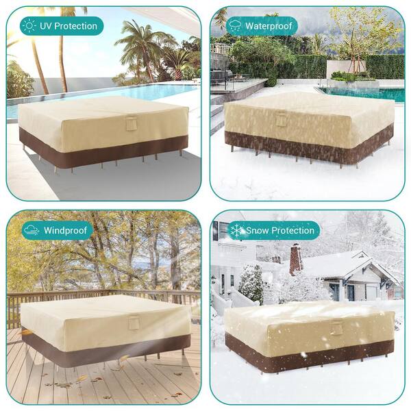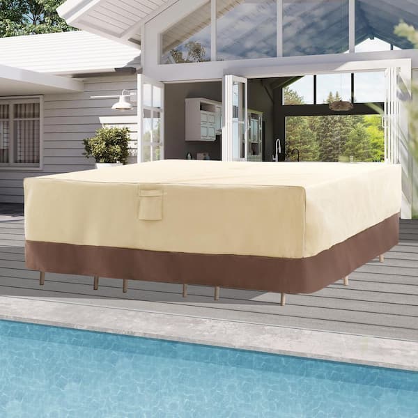 Beige and Brown Rectangular Table Cover, Waterproof and Heavy-Duty Outdoor Furniture Cover Fixed by Elastic Hem Cord