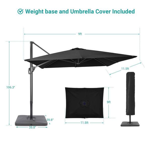 Black Premium 11.5 x 9 ft. Cantilever Patio Umbrella with a Base and 360° Rotation and Infinite Canopy Angle Adjustment