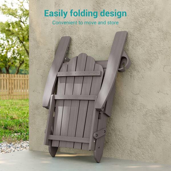 Brown Folding Adirondack Chair with Retractable Ottoman Fire Pit Patio Chair with Cup Holder (2-Pack)