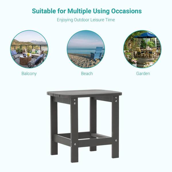 Charcoal Gray Plastic Outdoor Side Table, Patio Adirondack Square End Table, Weather Resistant