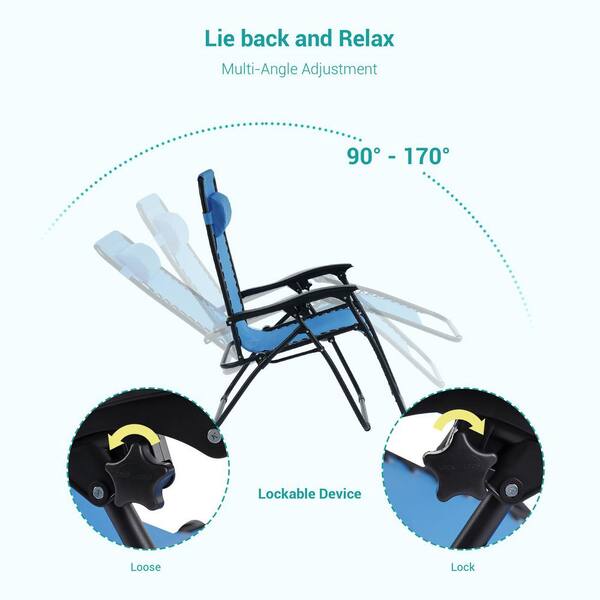 Folding Zero Gravity Metal Frame Recliner Outdoor Lounge Chair With Side Tray, Adjustable Headrest in Lake Blue (2-pack)