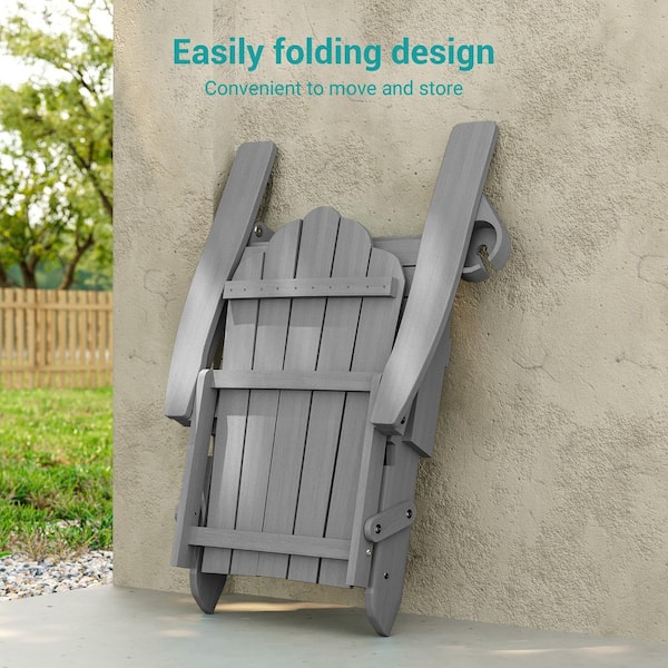Gray Folding Adirondack Chair with Retractable Ottoman Fire Pit Patio Chair with Cup Holder (4-Pack)