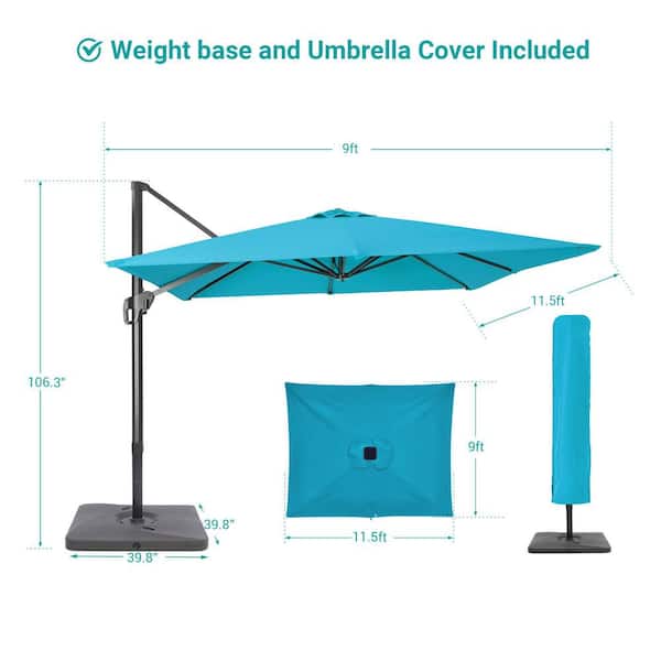 Lake Blue Premium 11.5 x 9 ft. Cantilever Patio Umbrella with a Base and 360° Rotation and Infinite Canopy Angle