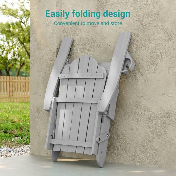 Light Gray Folding Adirondack Chair with Retractable Ottoman Fire Pit Patio Chair with Cup Holder (2-Pack)