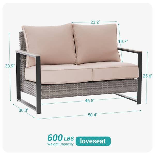 Loveseat Sofa All-Weather Patio Conversation Set Couch PE Rattan Gray Wicker with Sand Cushion