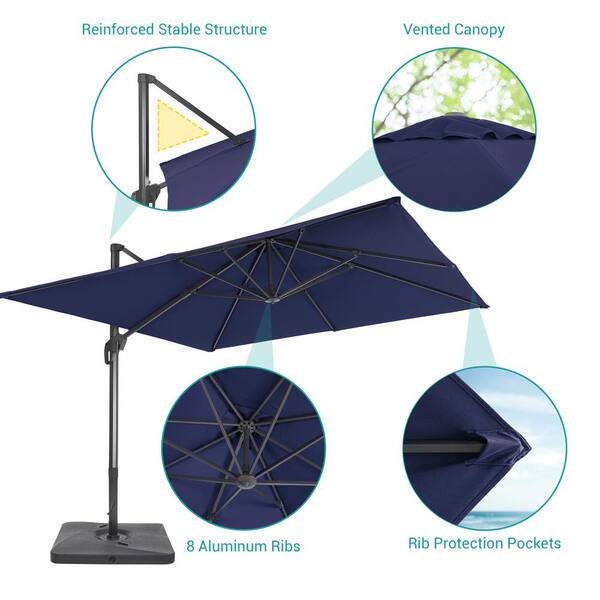 Navy Blue Premium 10 x 10 ft. Cantilever Patio Umbrella with Base and 360° Rotation and Infinite Canopy Angle Adjustment