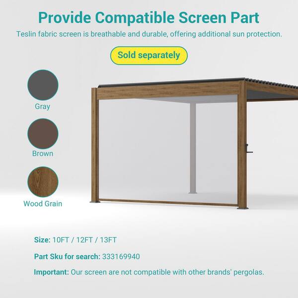 Nordica Series 10 ft. x 10 ft. Aluminum Louvered Pergola with Solar-Powered LED Lights, Wood Grain