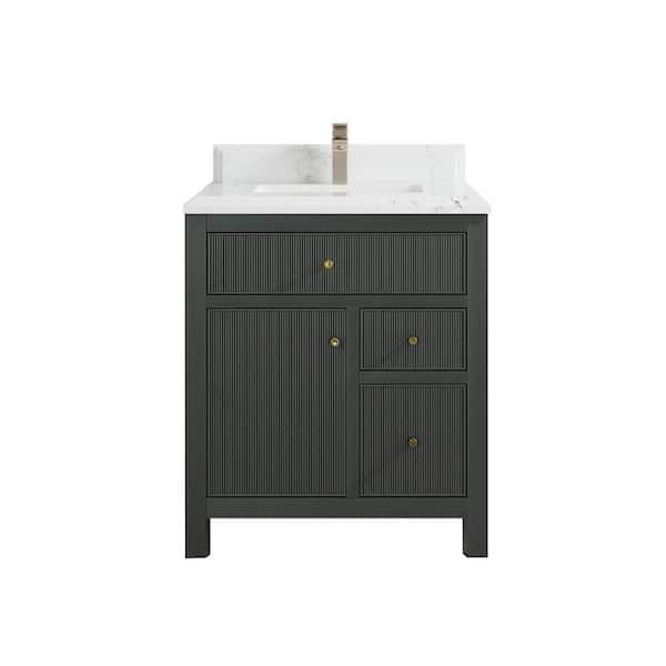 Sonoma 30 in. W x 22 in. D x 36 in. H Bath Vanity in Dark Green with Cove Edge Empira Quartz Vanity Top