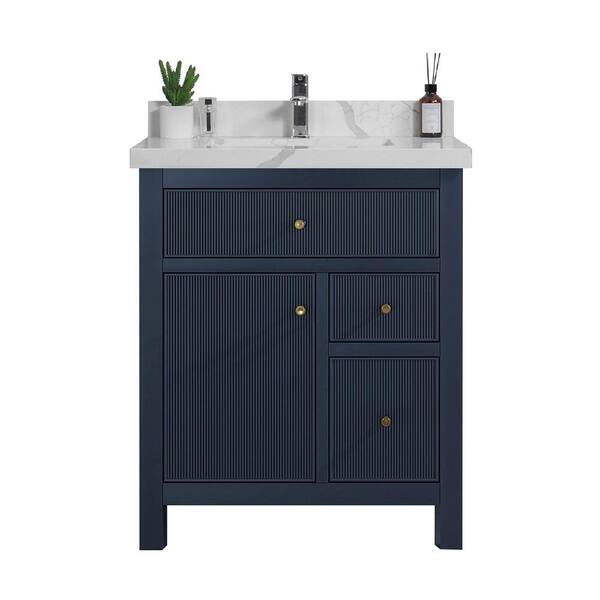 Sonoma 30 in. W x 22 in. D x 36 in. H Bath Vanity in Navy Blue with 2 in Calacatta Laza Quartz Vanity Top