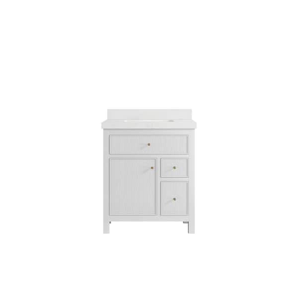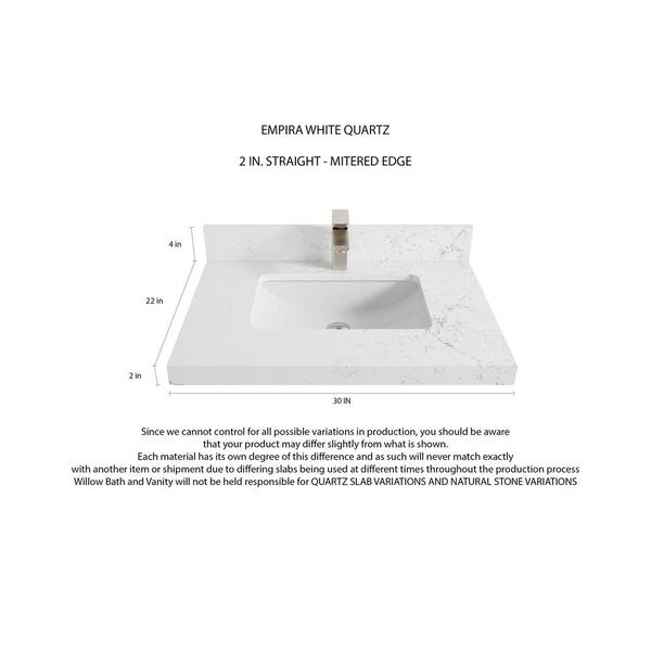 Sonoma 30 in. W x 22 in. D x 36 in. H Bath Vanity in White with 2 in. Empira Quartz Top