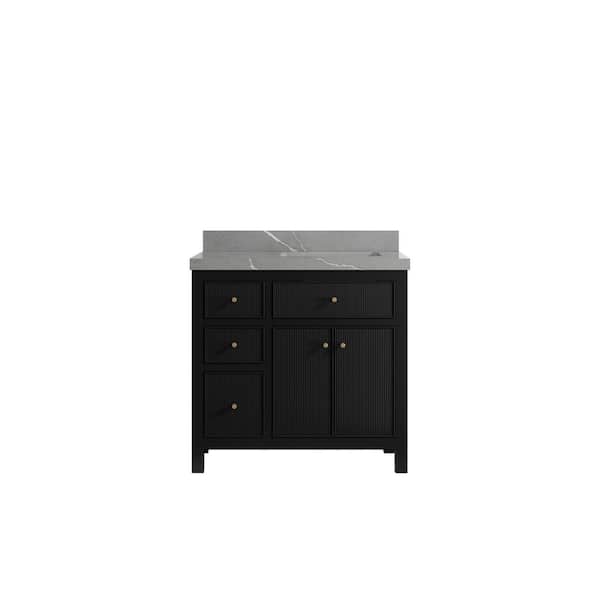 Sonoma 36 in. W x 22 in.D x 36 in. H Right Offset Sink Bath Vanity in Black with 2 in.Piatra Quartz Top