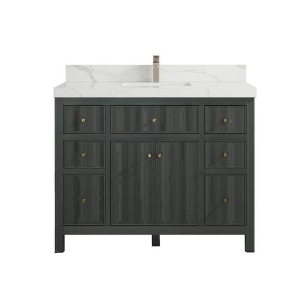 Sonoma 48 in. W x 22 in. D x 36 in. H Bath Vanity in Dark Green with 2 in Calacatta Laza Quartz Vanity Top