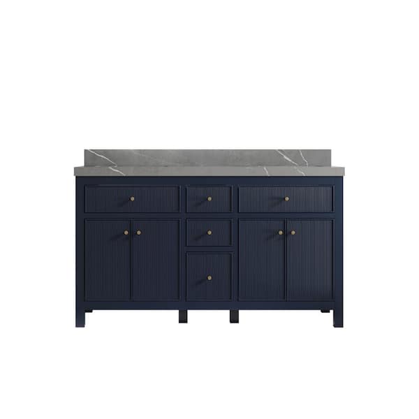 Sonoma 60 in. W x 22 in. D x 36 in. H Double Sink Bath Vanity in Navy Blue with 2 in. Piatra Quartz Top