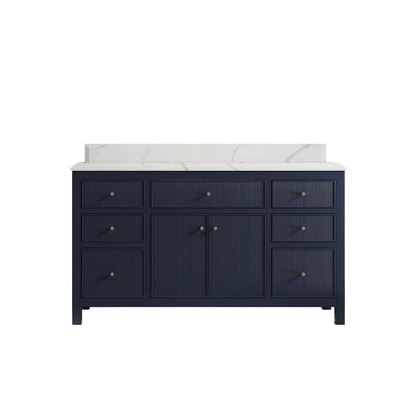 Sonoma 60 in. W x 22 in. D x 36 in. H Single Sink Bath Vanity in Navy Blue with Cove Edge Calacatta Quartz Top