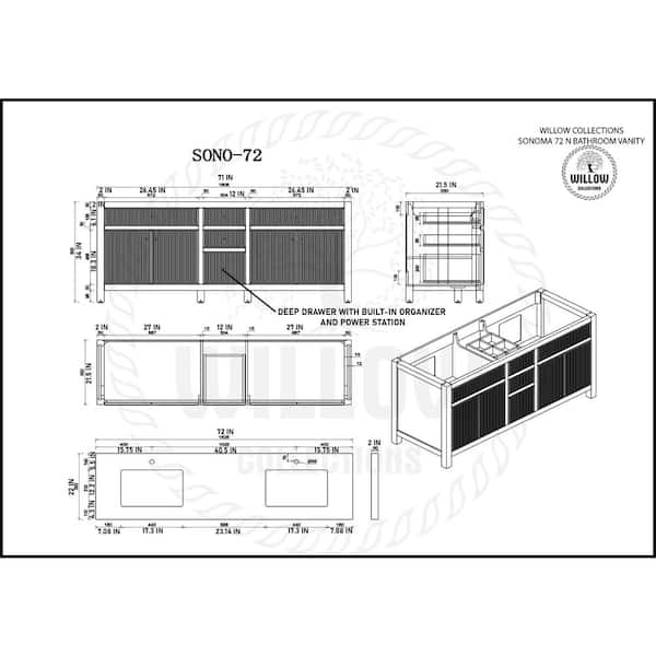 Sonoma 72 in. W x 22 in. D x 36 in. H Double Sink Bath Vanity in Black with 2 in White Quartz Vanity Top