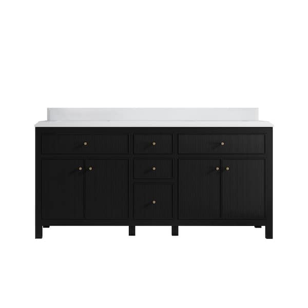 Sonoma 72 in. W x 22 in. D x 36 in. H Double Sink Bath Vanity in Black with Cove Edge White Quartz Top