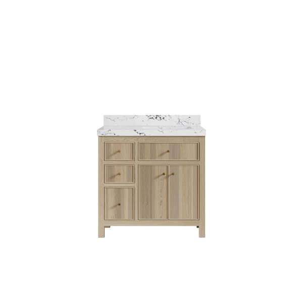 Sonoma Oak 36 in. W x 22 in. D x 36 in. H Single Right Offset Sink Bath Vanity White Oak with 2 in. Viola Night Qt. Top