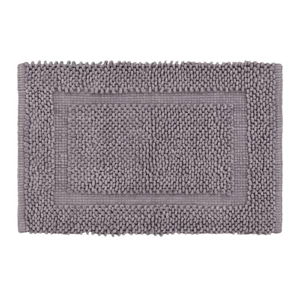 Sophie Border Charcoal Grey 27 in. x 45 in. Cotton Textured Bath Mat