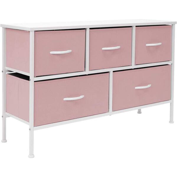 11.87 in. L x 39.5 in. W x 24.62 in. H 5-Drawer Pink Dresser Steel Frame Wood Top Easy Pull Fabric Bins
