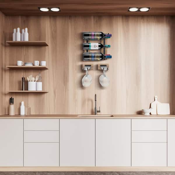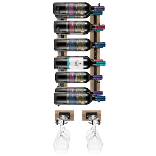 12 Bottles Mahogany Wine Rack and 8 Glass Holder Wall Mounted (Set of 6)