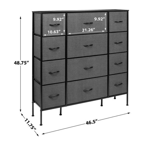12-Drawer Black Classic Fabric Bin Chest of Drawers 48.75 in. H x 46.5 in. W x 11.75 in. D