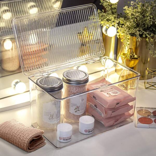 2 Pack Clear Plastic Storage Bins with deviders and Lids for fridge and Pantry Stackable organizer set