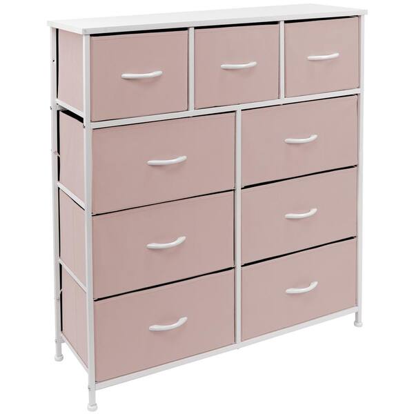 39.5 in. L x 11.5 in. W x 39.5 in. H 9-Drawer Pink Dresser with Steel Frame Wood Top Easy Pull Fabric Bins