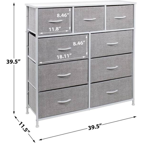 39.5 in. L x 11.5 in. W x 39.5 in. H 9-Drawer White Dresser with Steel Frame Wood Top Easy Pull Fabric Bins