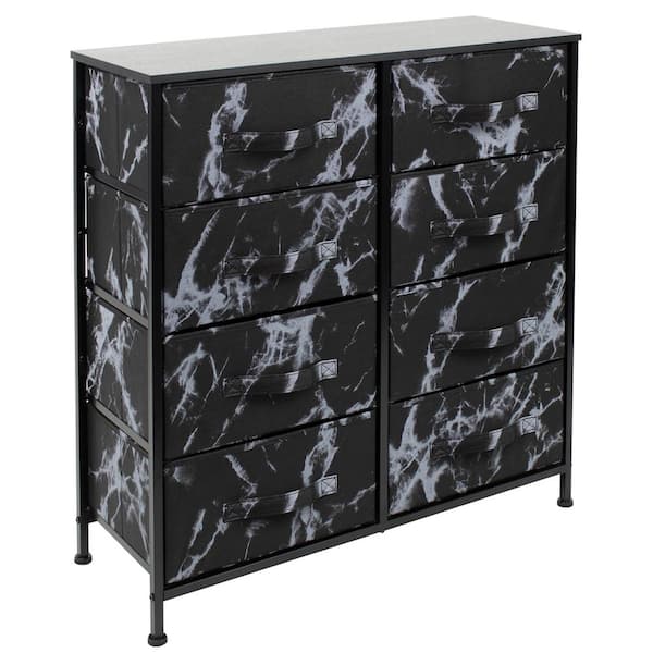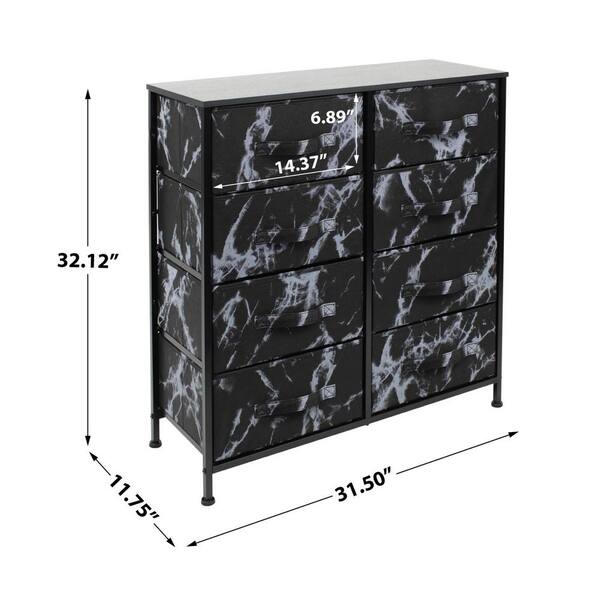 8-Drawer Marble Black Dresser Steel Frame Wood Top Easy Pull Fabric Bins 32.12 in. H x 11.75 in. W x 31.5 in. D