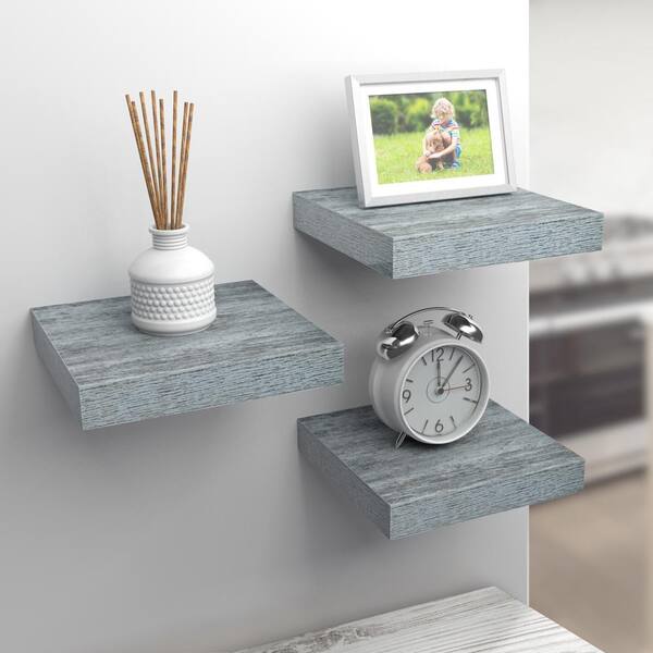 9.25 in. x 9.25 in. x 1.5 in. Rustic Blue Wood Square Decorative Wall Shelves with Brackets (3-Pack)