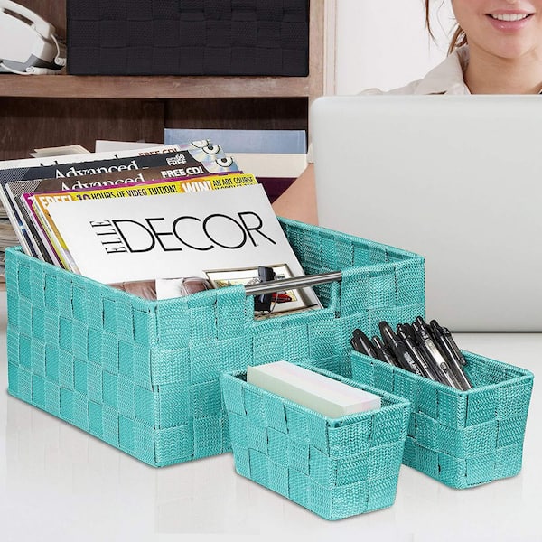 Blue 12.5 in. x 6 in. Polypropylene Decorative Basket (Set of 7), Storage Baskets for Organizing, Mesh Closet Storage