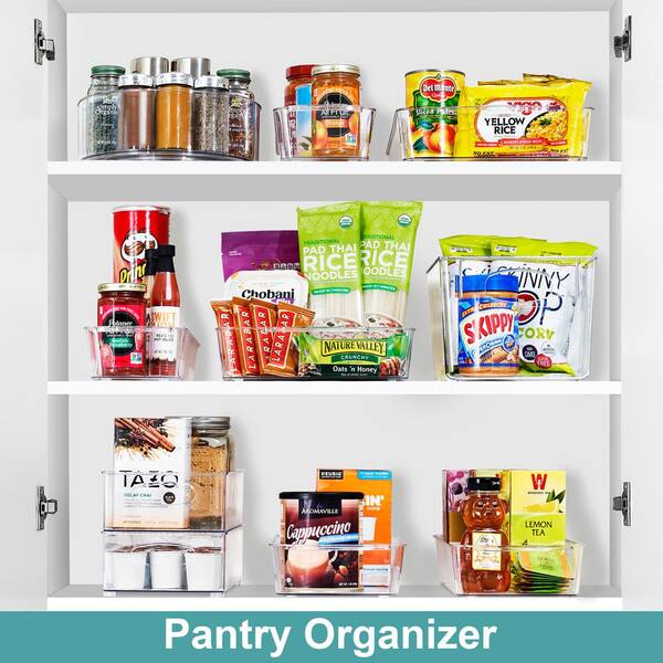 Clear Small Roll Out Fridge Organizers Dividers and Handles 4 in. L x 14 in. W x 3 in. H Fridge Storage on Wheels 2-Pack