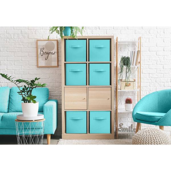 Large Storage Cubes with Handles, Blue 13 in x 13 in Fabric Decorative Basket (Set of 6), Clothes and Closet Organizer