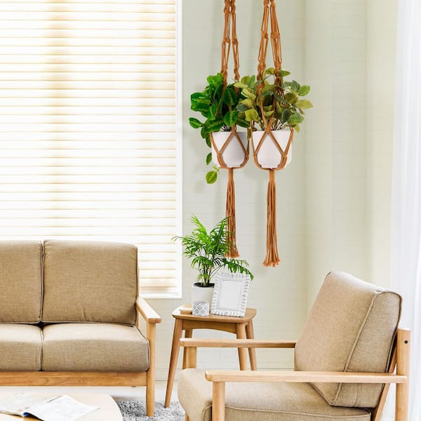 Macrame Plant Hanger, 12 in x 41 in Brown Cotton Round Indoor/Outdoor Hanging Planter 8-Pack, For Home, Patio, Garden