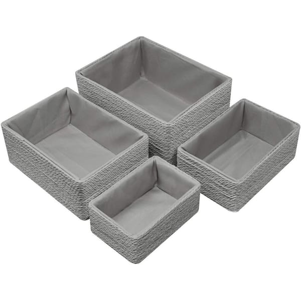Storage Baskets for Bathroom, Woven Paper Rope Organizer Boxes, Gray 11 in. x 5 in. Fabric Decorative Box (Set of 4)