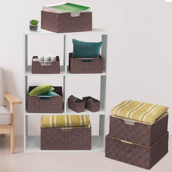 Storage Baskets for Organizing, Brown 15 in. x 7 in. Plastic Decorative Basket Set of 9, Mesh Linen Closet Organizer