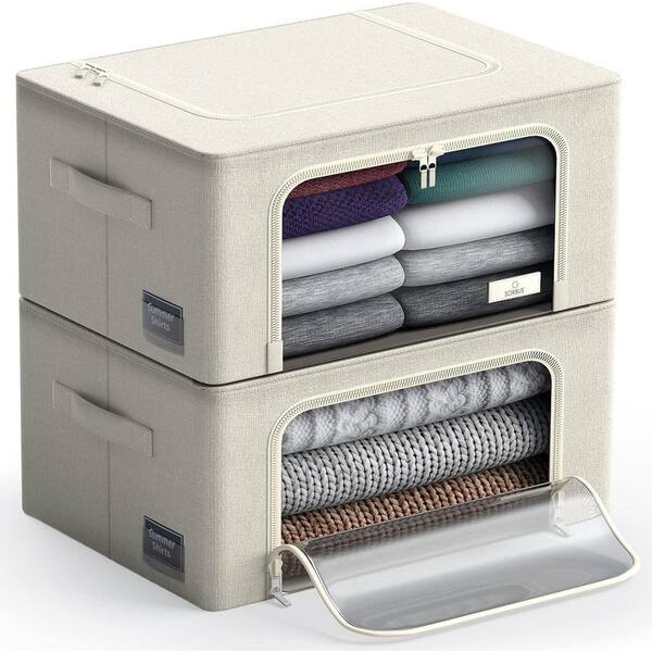 Storage Bins, Organizers with Metal Frame, Handles, and Window, Beige15.75 in. x 8 in. Fabric Decorative Box (Set of 2)