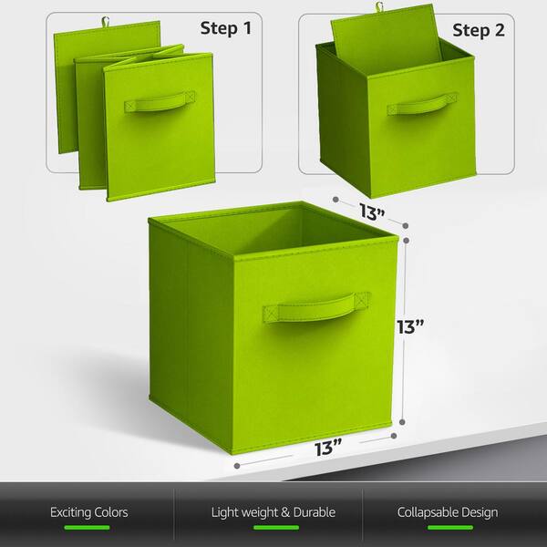 Storage Cubes with Handles, Green 13 in. x 13 in. H Fabric Decorative Basket Set of 8, Large Foldable Closet Organizer