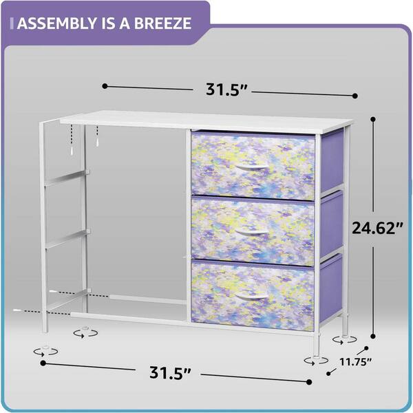 Tie-Dye Purple/Yellow 6 Drawer 31.5 in. Wide Dresser without Mirror, Organizer with Steel Frame, Wood Top, & Fabric Bins