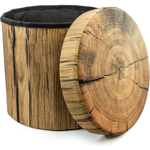 Tree Stump Round Storage 15 In. Ottoman (Brown Polyester )